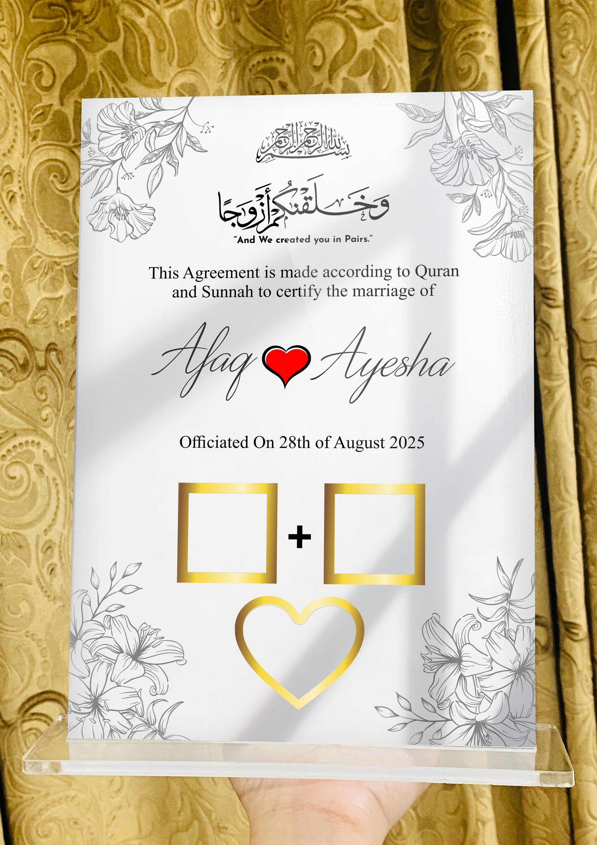 Acrylic Printed Nikkah Thumb Board 005